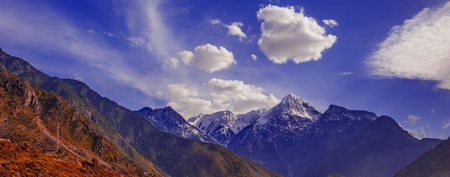 Beautiful mountain & cloudy sky view of Jammu and Kashmir state, India on July 2021
