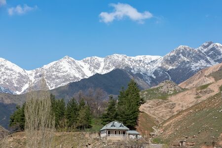Beautiful mountains and clouds in early spring near Almaty city, Kazakhstan.