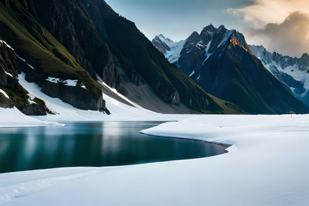 Beautiful view of mountainous lake Saiful Muluk in Naran Valley, Mansehra District, Khyber-Pakhtunkhwa, Northern Areas of Pakistan