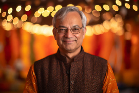 Portrait of a cheerful senior Indian man wearing a colorful kurta, showcasing cultural heritage and positive aging