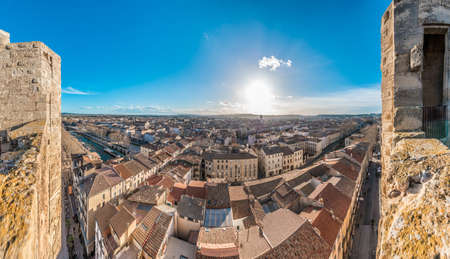 NARBONNE, FRANCE - FEBRUARY 13, 2016: Narbonne city roofs as seen from the Gilles Aycelin Dungeon in Languedoc-Roussillon-Midi-Pyrenees, France