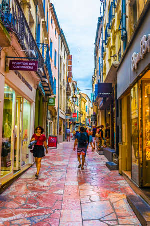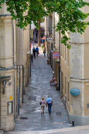 NARBONNE, FRANCE, JUNE 27, 2017: People are strolling through a narrow street in the center of Narbonne, France