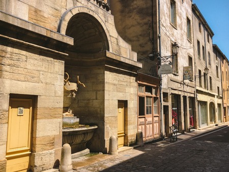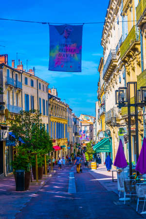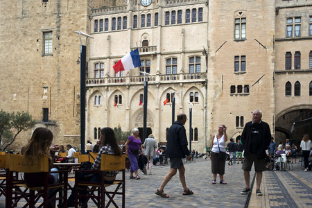 AVIGNON, FRANCE - JUNE 18, 2018: people walking on street with beautiful old architecture, Avignon, France