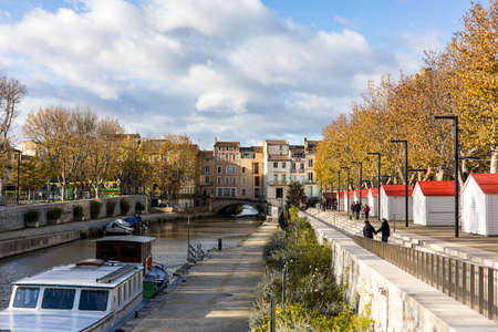 Narbonne, France - April 8, 2016: The Canal de la Robine in Narbonne city. Languedoc-Roussillon, France. Classed as a UNESCO world heritage site, the Canal de la Robine is the main thoroughfare which gives the town its heartbeat