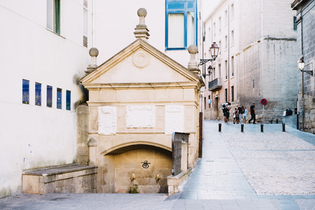Logrono, Spain - 11.09.2016: Pedestrian street with old buildings and tourists walking.