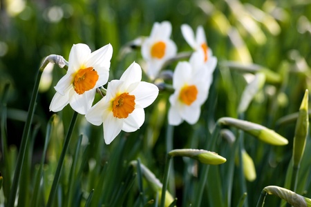 Daffodil blossoms and buds; Narcissus pseudonarcissus