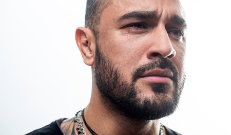 Feeling sad and crying. Sad man. Unhappy hispanic man with tears on sad face. Suffering handsome latino guy being sad and depressed