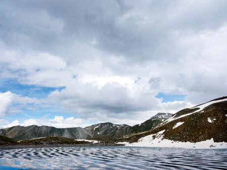 Lake between swiss and italy border at Grand Saint Bernard pass.