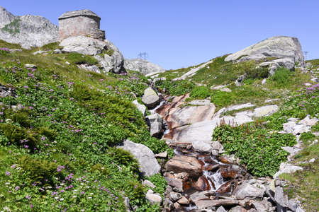Landscape with a river at St. Gotthard pass on the Swiss alps