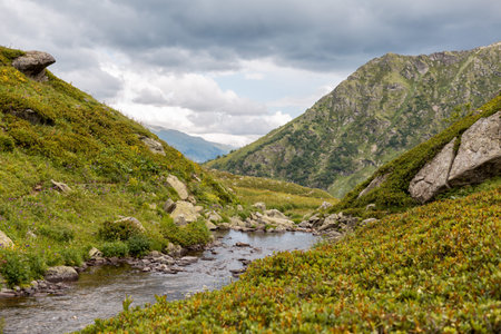 Beautiful view of the mountain river in the Caucasus mountains. Russia