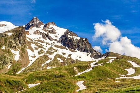 Mountain landscape with snow and clear blue sky, Caucasus, Russia