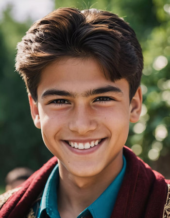 A resident of Afghanistan, this smiling man radiates warmth and happiness, displaying a rich cultural heritage while embracing life. His genuine expression reflects the beauty of his surroundings. AI.