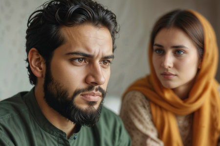 Portrait of angry Indian couple in living room, conflict in family