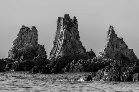 The magnificent sight of the rocks in the sea, the wonder of the rocks on the shore of the stormy waves