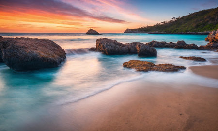 A beautiful sunset on Glasshouse Beach near Narooma, NSW, Australia