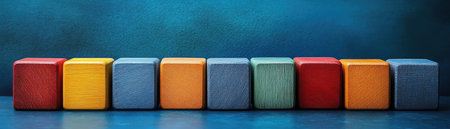A close-up of colorful wooden blocks arranged on a vibrant abstract background. This image captures creativity, playfulness, and artistic design, ideal for educational materials or decor.