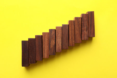 Colorful Wooden Blocks are Arranged on an Upward Trendline Concept of Growth or Progress