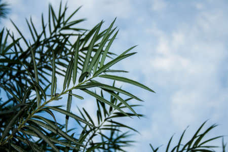 thin green leaves on the background of blue sky