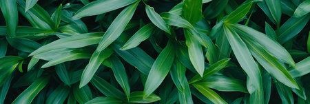 Beautiful dark background of tropical green leaves. Flat lay.