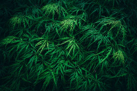 Beautiful dark background of green leaves. Top view.