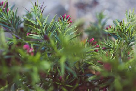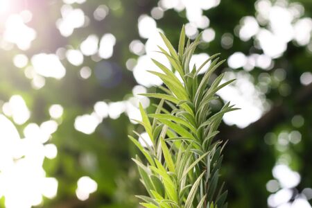 Close up photo of rosemary leaves. Detail of rosemary herb plants leaf texture.