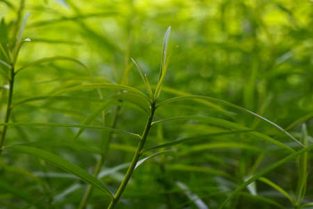 Spring greens. Vegetable green background. Euphorbia cyparissias - cypress spurge..