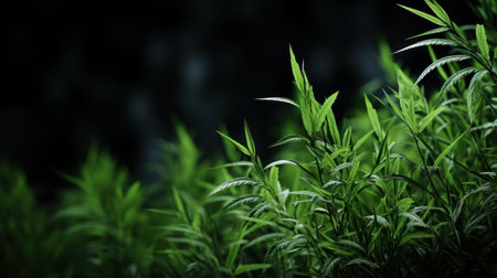 Close-Up Of Dark green leaves black background