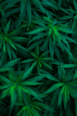 Low key of the peak green plant leaves, Selective focus.