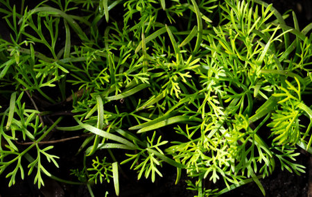 Young green dill grows in the ground. Nature