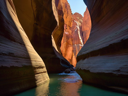 Breathtaking Canyon Narrows Surrounded by Colorful Rock Formations Under a Clear Blue Sky