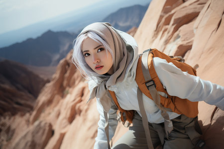 Generative AI Image of Beautiful Climber Girl Wearing Hijab Climbing a Rock