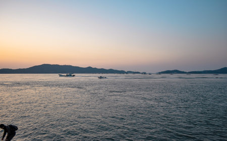 Sunset view of the sea and mountain in the evening, South Korea.