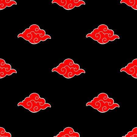red Cloud Japanese or Chinese cartoon doodle illustration drawing style seamless pattern vector with black background