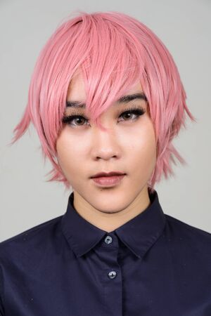 Face of young androgynous Asian transgender woman