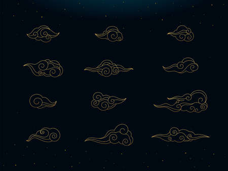 Set of Golden Clouds. Golden boho style