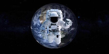 Astronaut spaceman do spacewalk while working for space station in outer space . Astronaut wear full spacesuit for space operation . Elements of this image furnished by space astronaut photos.