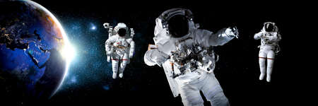 Astronaut spaceman do spacewalk while working for space station in outer space. Astronaut wear full spacesuit for space operation.