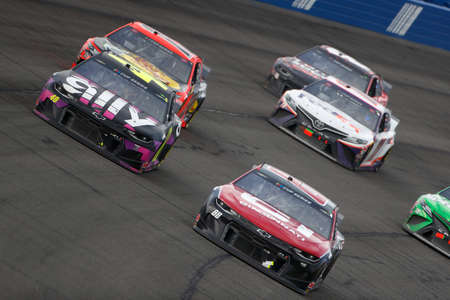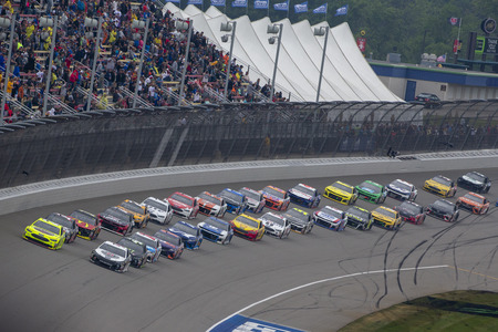 June 10, 2018 - Brooklyn, Michigan, USA: Kevin Harvick (4) and Paul Menard (21) lead the field for the FireKeepers Casino 400 at Michigan International Speedway in Brooklyn, Michigan.