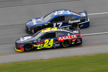 William Byron (24) races down the dogleg during the GEICO 500 at Talladega Superspeedway in Lincoln, Alabama.