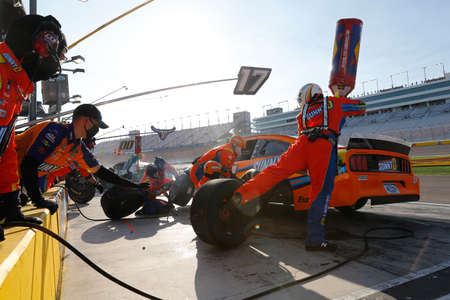 AVONDALE, AZ USA - November 02, 2025: BRAD KESELOWSKI (6) of Rochester Hills, MI brings his car in for service during the NASCAR Cup Series Championship at Phoenix Raceway in AVONDALE AZ.