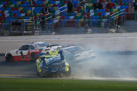 Brandon Jones wrecks during the Beef. It's What's For Dinner. 300 at Daytona International Speedway in Daytona Beach, Florida.