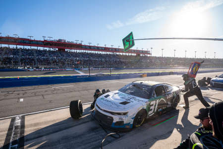 AVONDALE, AZ USA - November 02, 2025: DENNY HAMLIN (11) of Chesterfield, VA brings his car in for service during the NASCAR Cup Series Championship at Phoenix Raceway in AVONDALE AZ.