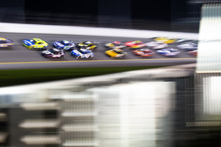 NASCAR Race at Night With Cars Racing on Track in Daytona