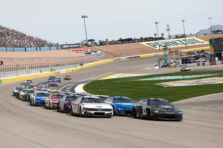 BUBBA WALLACE (23) of Mobile, AL battles for position during the Pennzoil 400 in Las Vegas, NV.