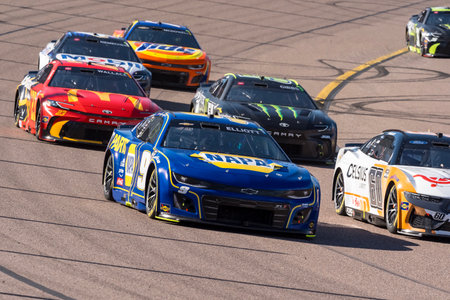 AVONDALE, AZ USA - November 02, 2025: CHASE ELLIOTT (9) of Dawsonville, GA races through the turns during the NASCAR Cup Series Championship at the Phoenix Raceway in AVONDALE AZ.