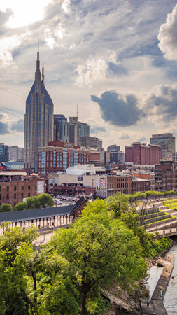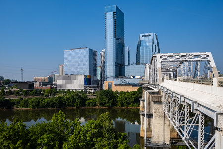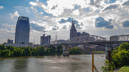 Nashville, Tennessee downtown skyline with Cumberland River in USA