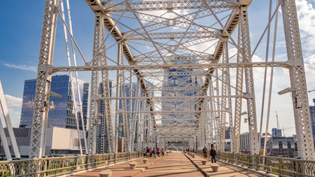 Popular pedestrian bridge over Cumberland River in Nashville - NASHVILLE, USA - JUNE 15, 2019