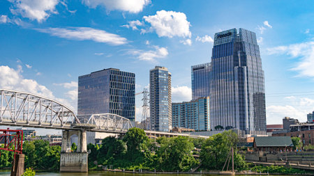 The skyline of Nashville at Cumberland River - NASHVILLE, USA - JUNE 15, 2019