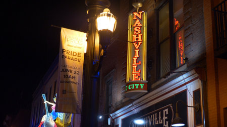 Nashville, Tennessee, U.S.A - June 26, 2022 - The bars and restaurants along Broadway Street