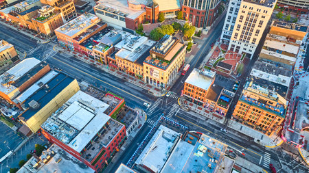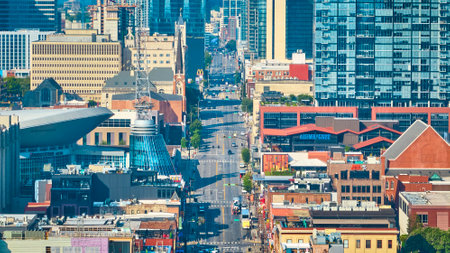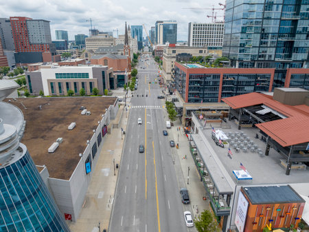Aerial View of Downtown Nashville Skyline and Broadway Street